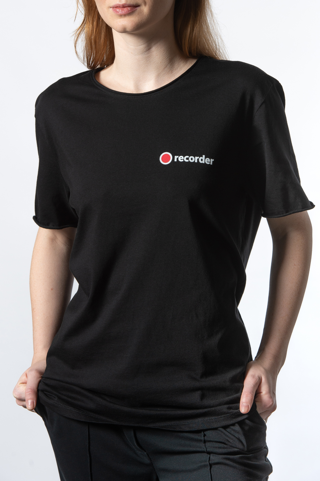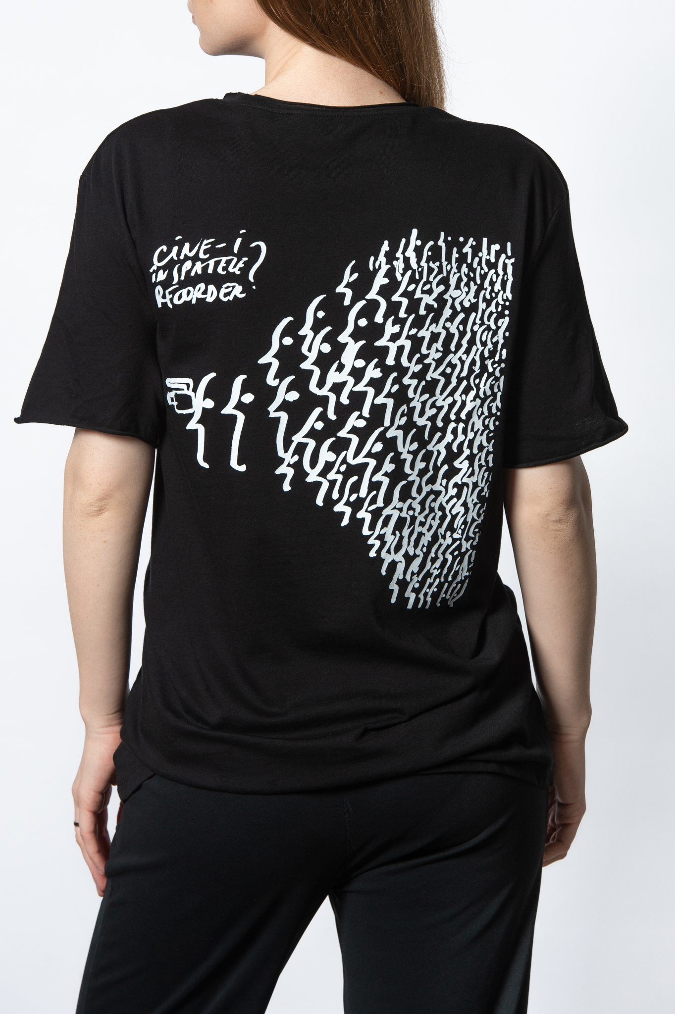 Tricou cu finisaj brut la guler şi la mâneci.
